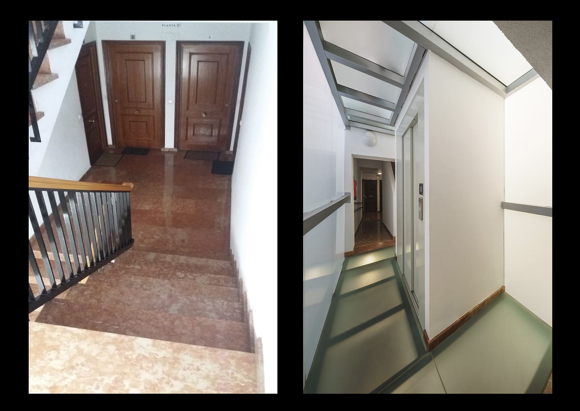 La obra de ASCENSORES o, por utilizar una expresión más ajustada, las intervenciones en edificios existentes para mejorar su ACCESIBILIDAD, ha sido durante años el concreto y discreto campo de experiencia de nuestros principios arquitectónicos y sociales.